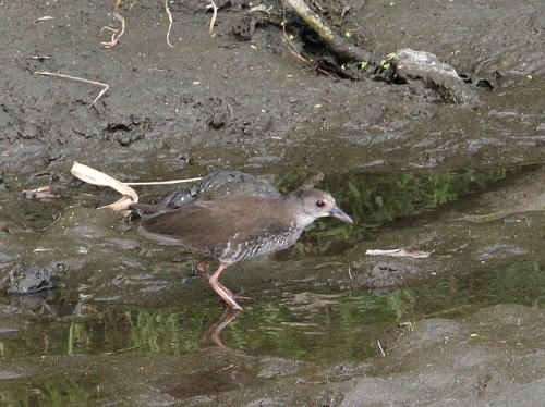 | シロハラクイナ[7月30日] この後塒に入ってしまいました。 | シロハラクイナ[7月31日] 翌朝も塒近くを歩いていました。 | |