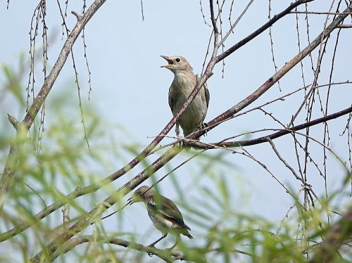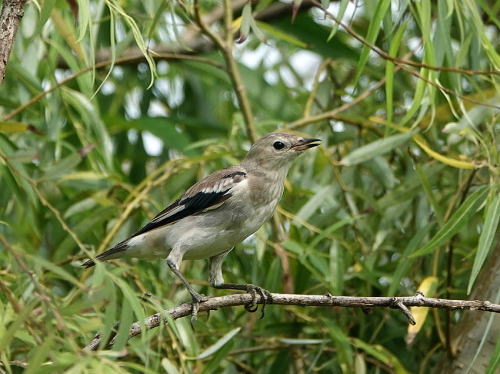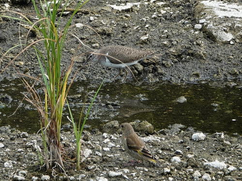 | イソシギ、カワラヒワ[8月10日] コチドリと同じ所にいました。カワラヒワは幼鳥です。 | コムクドリ[8月10日] クモを獲ったり、エノキの実を食べたりしていました。 | |
