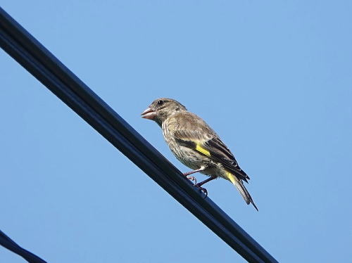 | ツバメ、アカハラツバメ[8月2日] 今日も集まって来ました。 | カワラヒワ[8月2日] ツバメが止まっている電線の近くに止まりました。 | |