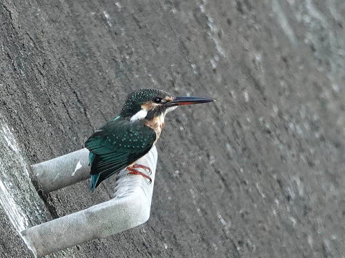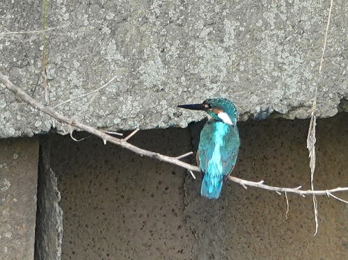 | ツバメ[8月3日] 護岸に数羽集まって飛んだり戻ったり、全部幼鳥でした。 | カワセミ[8月3日] 毛がぼさぼさしているようです。 | |