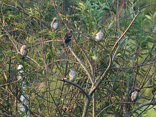 | コムクドリ[8月3日] 昨日と同じ木に群れていました。 | コサギ[8月2日] 河原でアオサギと一緒に佇んでいました。 | |