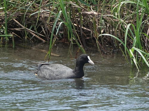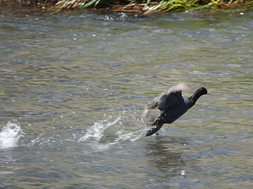 | アカハラツバメ[8月1日] 若鳥が1羽混じっていました。 | オオバン[8月1日] 今朝の雨で水かさが増し流れが速くなっています。泳ぐのに苦労していました。 | |