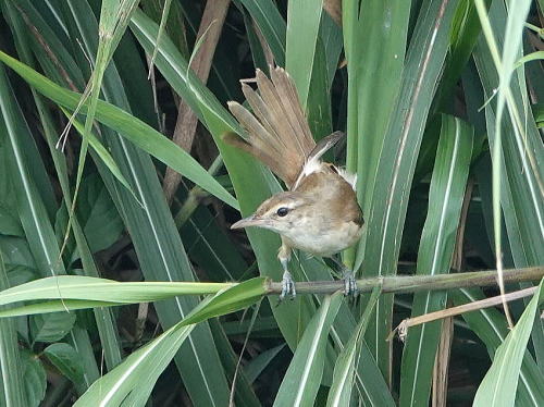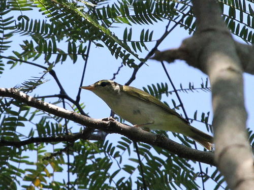 | センダイムシクイ[8月30日] エナガの群れに混じっていないかなと探しました。やはりいました。 | センダイムシクイ[8月30日] あっちこっちと飛び回り手強いです。 | |