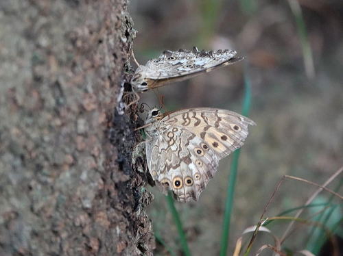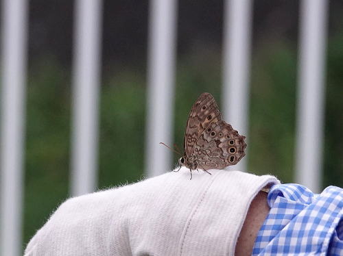 | 月[8月27日] ふと見上げるとまだ明るい空に月が綺麗に浮かんでいました。 | サトキマダラヒカゲ[8月27日] 城址公園は静かでした。この蝶だけは何頭も絡み合って飛んでいました。 | |