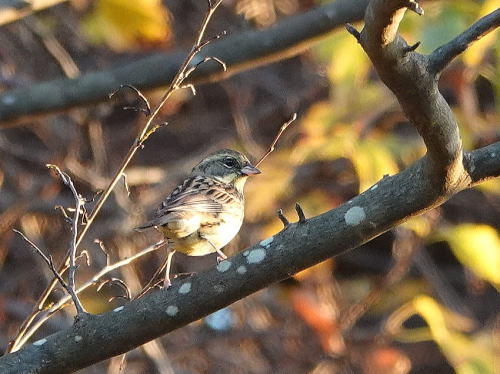 | マガモ[12月6日] しばらく見かけませんでしたが裏門にいました。 | アオジ[12月6日] 未だほとんど樹上です。 | |