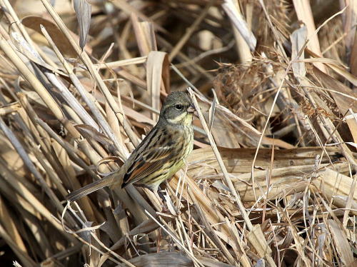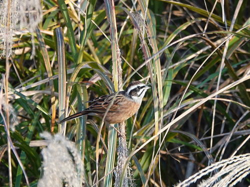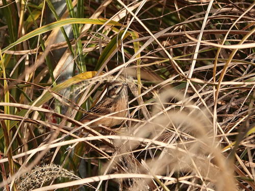 | ジョウビタキ[12月7日] 相当広い範囲をテリトリーとしているようです。 | アオジ[12月7日] こちらも穂を食べていました。 | |