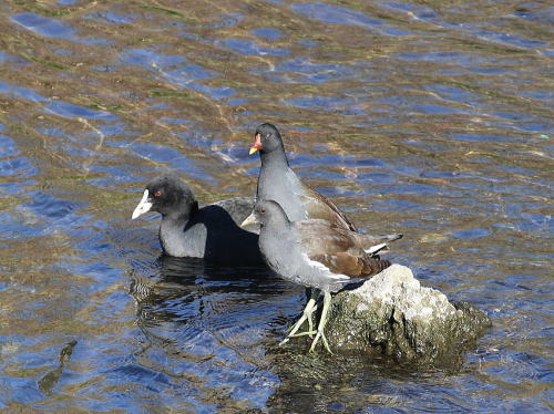 | コガモ[12月4日] 最近はあまり見かけません。 | バン[12月4日] いつも一緒に採餌しています。 | |