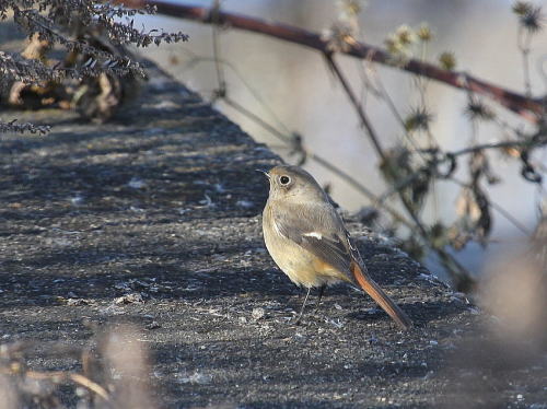 | キセキレイ[12月21日] 直ぐ近くにもう1羽いました。 | ジョウビタキ[12月21日] もう居なくなったのかと思いましたが未だ居ました。 | |