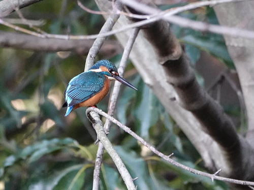 | ゴイサギ[12月9日] 往きに見掛けましたが帰りも同じ格好でした。 | カワセミ[12月9日] 道路と田んぼの間の用水路です。自転車が来たので飛んで行ってしまいました。 | |