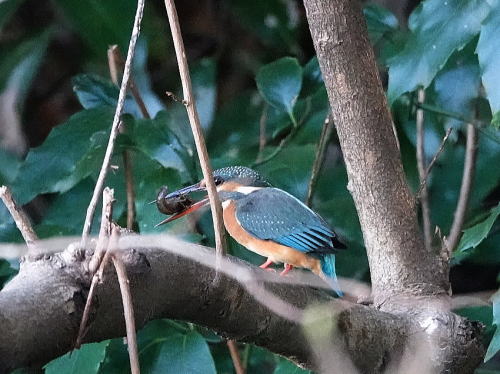 | カワセミ[12月24日] 大きな魚を呑み込むのに苦労していました。 | アオゲラ[12月22日] まさか?!と目を疑うような場所でした。 | |
