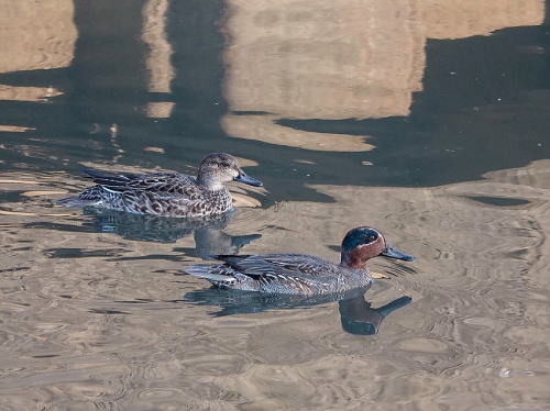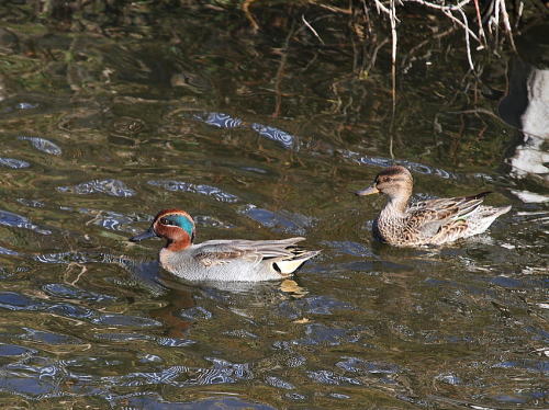 | ツグミ[12月8日] 時々見かけるようになりました。 | コガモ[12月8日] もう番になっているのでしょうか。 | |