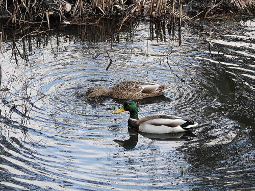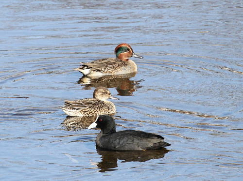 | カイツブリ[12月26日] めったにしか見られません。普段はどこにいるのでしょう。 | コガモ、オオバン[12月25日] ♂が見られるようになりました。 | |