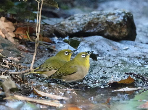 | メジロ[12月1日] いつも連れ立って来ます。 | メジロ[12月1日] 水浴びシリーズです。 | |