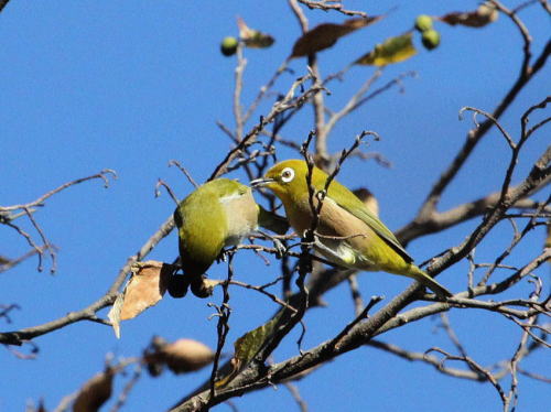 | ツミ[12月16日] ♀です。 | メジロ[12月16日] 左のメジロが食事中に右のメジロが割り込んできて追い出されてしまいました。 | |
