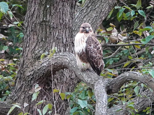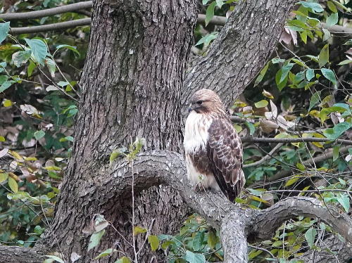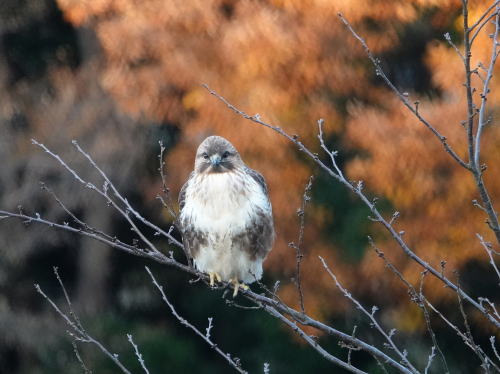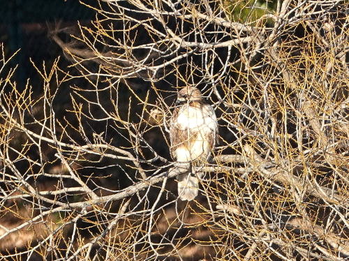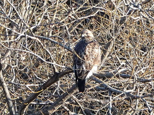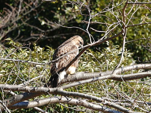 | ノスリ[12月28日] 夕方になるとこの辺りにいます。 | ノスリ[12月28日] 込みあった枝の中に居るようですが、意外とそうではないかも。 | |