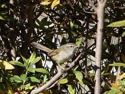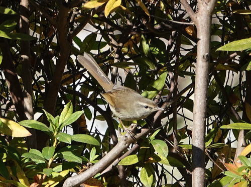 | ウグイス[12月20日] 珍しく植込みの明るい所に出て来ました。 | ウグイス[12月20日] ほんの少しの間同じ所にいました。 | |