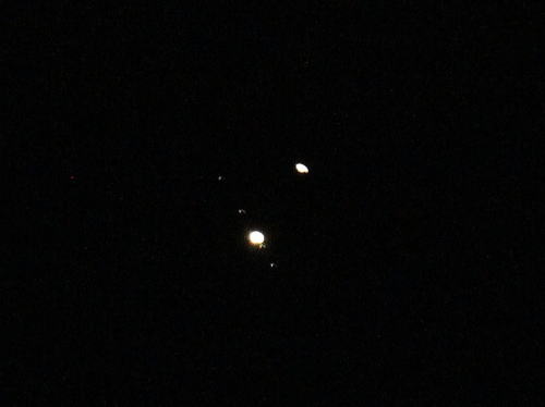 | セグロセキレイ[12月22日] 畑で走り回って採餌していました。 | 木星、土星[12月21日] 400年ぶりの大接近だそうです。上が土星、下が木星、木星の周りには4つの衛星が見えています。手持ちなのでぶれています。 | |