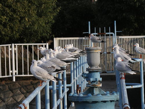 | ユリカモメ[12月29日] 上流から帰る途中のものも一緒に、一時は50羽くらい居ました。 | アオジ[12月29日] 直ぐ近くで声がしました。 | |