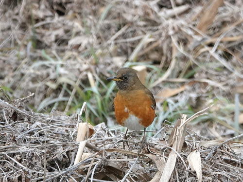 | アカハラ[1月11日] 昨日最初に見たのと同じ個体のようです。 | アカハラ[1月11日] 2羽居たのでしょう。 | |