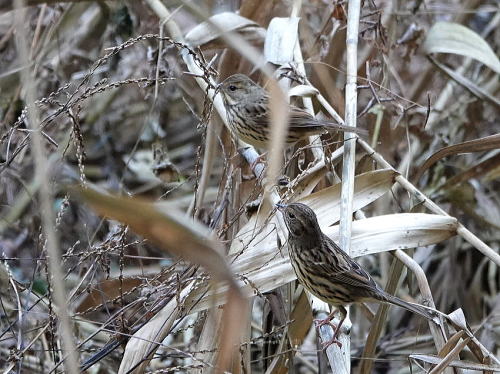 | カシラダカ[1月3日] 群れで採餌中でした。 | カシラダカ[1月3日] 10羽以上の群れでした。 | |