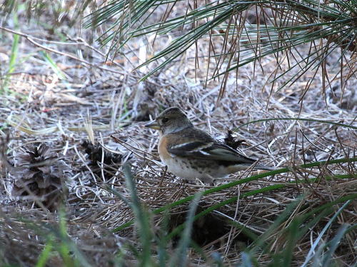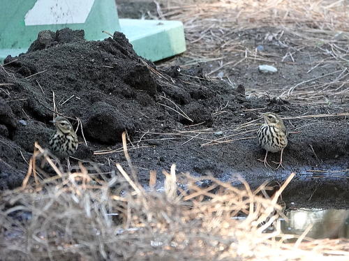 | ビンズイ[1月4日] 海岸の松林にビンズイとアトリがいると教えていただきました。 水場に水を飲みに来たのはビンズイです。 | ビンズイ[1月4日] 相当な数はいますが警戒心が強く手強いです。 | |