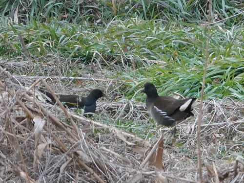 | クイナ[1月12日] しばらく付き合ってくれました。 | バン[1月11日] 若鳥が2羽ずっと一緒でした。 | |