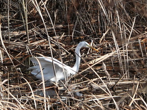 | タシギ[1月25日] 採餌しながらずんずんと歩いて行きます。 | ダイサギ[1月25日] 何か居たのか飛びついて行きました。 | |