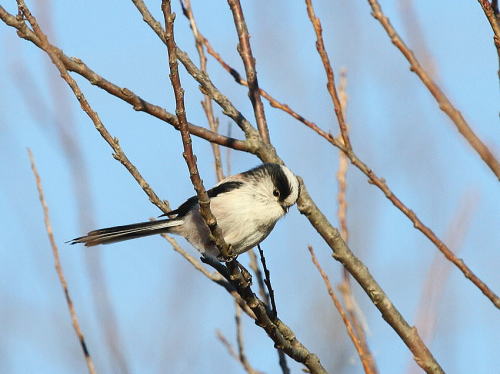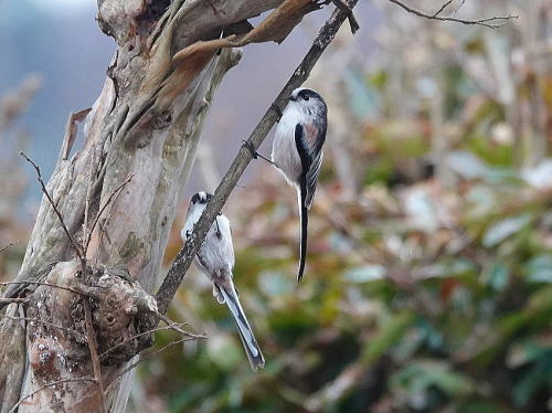 | アオジ[1月24日] 数羽でせっせと採餌中でした。 | エナガ[1月24日] 枝についたカイガラムシを食べているのでしょうか。 | |