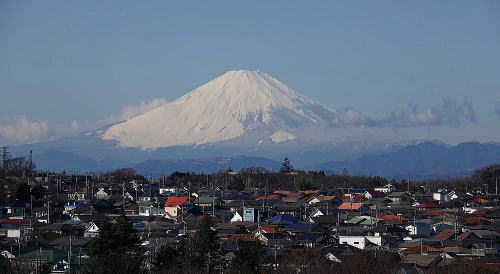 | 富士山[1月25日] 少し南寄りからですが富士山が遠いので上の写真と変わらないですね。 | 大山[1月25日] 大山にもうっすらと積もっています。 | |