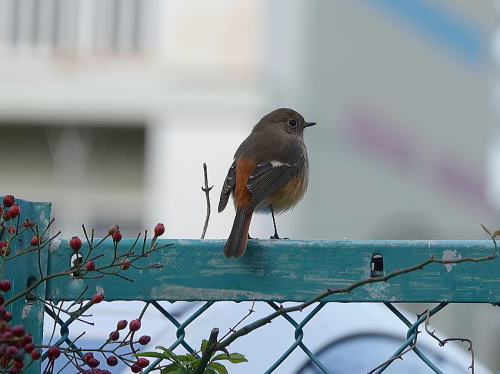 | アトリ[1月4日] この鳥を目当てに来ましたが暗い所に1羽だけでした。 | ジョウビタキ[1月3日] 赤い実を食べに来ていました。 | |