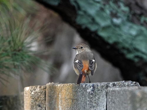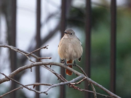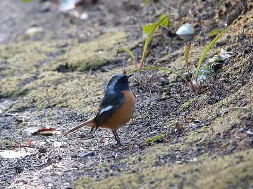 | ツグミ[1月17日] 地面に下り「だるまさんが転んだ」をいつまでもしていました。 | ジョウビタキ[1月17日] 階段をぴょんぴょんと上がって行きました。 | |