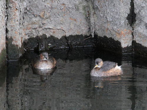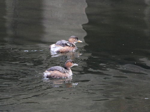 | カイツブリ[1月5日] 1羽は以前から居たのですが、いつの間にか2羽になっていました。 | カイツブリ[1月5日] 仲良さそうに泳いだり潜水しています。 | |