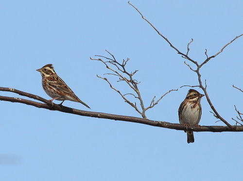| ホオジロ[1月9日] ♀です。♂と一緒に行動していました。 | ホオジロ[1月9日] ♂です。 | |