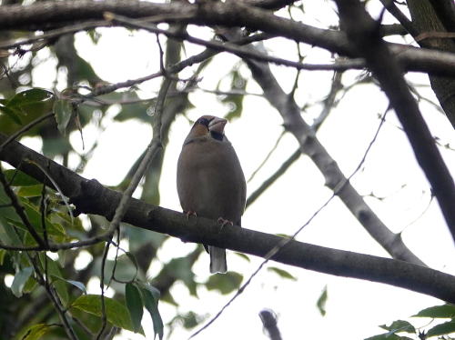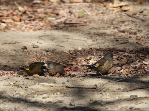 | カワラヒワ[1月19日] 海寄りの公園でせっせと採餌中でした。 | シメ[1月18日] 気配はあるのですがなかなか見つけられません。 | |