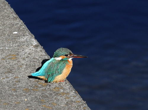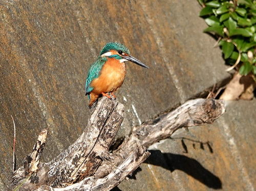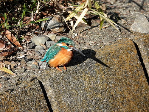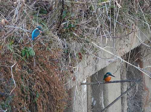 | カワセミ[1月1日] 細い川ですが時々見かけます。 | カワセミ[1月1日] 獲物を探していましたが見つからなかったようです。 | |