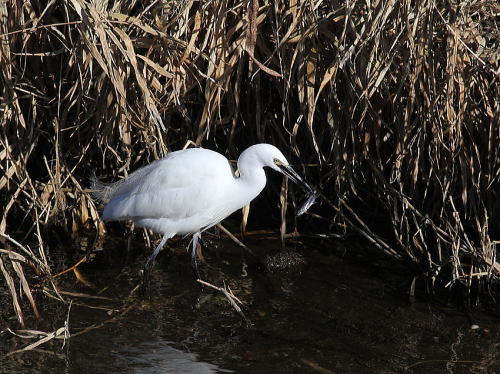 | ツグミ[1月1日] 今日は見かけないと思ったら藪の中にいました。 | コサギ[1月1日] 見事獲物をキャッチしました。 | |
