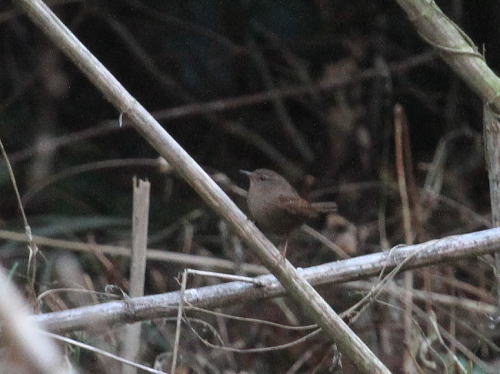 | ミソサザイ[1月20日] いたよと教えていただきました。遠くて暗いので証拠写真です。 | ルリビタキ[1月19日] 暫くぶりです。明るい所に出てきてくれません。 | |