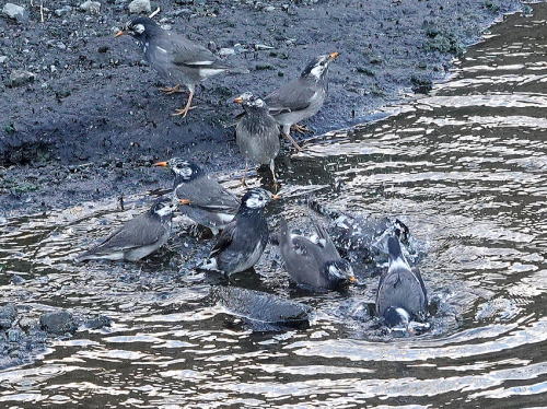 | カワセミ[1月10日] 休憩中を邪魔したようでした。 | ムクドリ[1月9日] 大群が水浴びにやって来ました。 | |