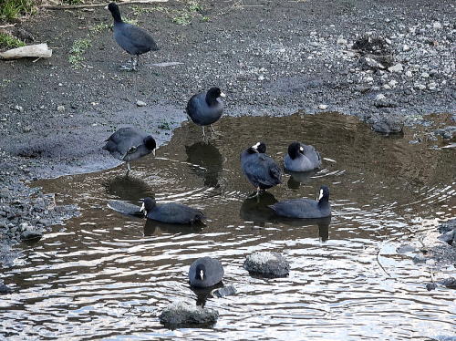 | ノスリ[1月1日] 太陽を背に旋回しながら上昇していきました。 | オオバン[1月1日] 十数羽居ます。 | |