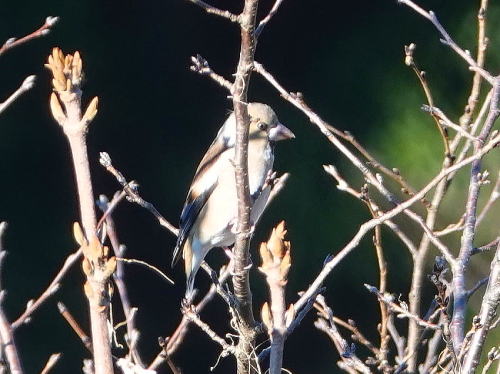| ノスリ[1月27日] ここでは久しぶりに見かけました。 | シメ[1月27日] ノスリが飛んで行った後にやって来ました。 | |