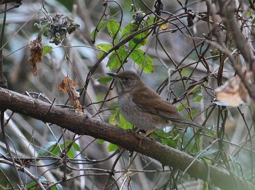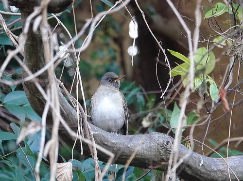 | シロハラ[1月13日] 声がしたので探しました。藪の中に見つけました。 | シロハラ[1月13日] 何か木の実を獲ったようです。 | |
