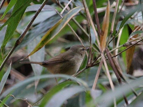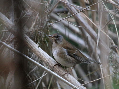 | シロハラ[1月26日] 声はしていたのですが遠くの林に見つけました。 | ウグイス[1月25日] 藪の中から出て来ません。 | |