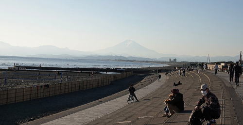 | 湘南海岸[1月4日] 東側です。賑わっていました。 | 湘南海岸[1月4日] 西側です、うっすらと富士山が見えます。 | |