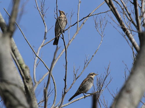 | ジョウビタキ[1月3日] 滅多にしか見掛けないです。 | ツグミ[1月3日] 今日はよく鳴き、姿も見えました。 | |
