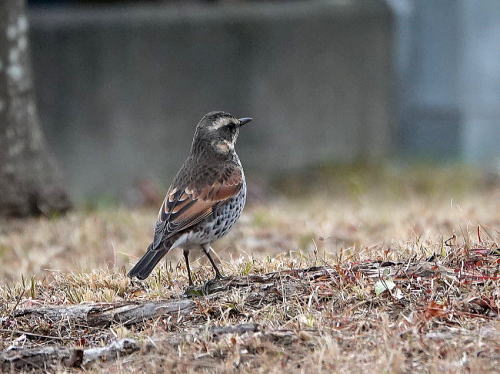 | タイワンリス[1月18日] 地面に下りて何か獲って食べていましたが、何でしょうか? | ツグミ[1月17日] 居ると思うのですがなかなか姿を見せてくれません。 | |