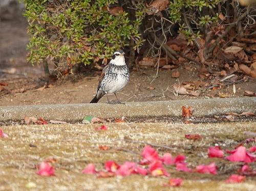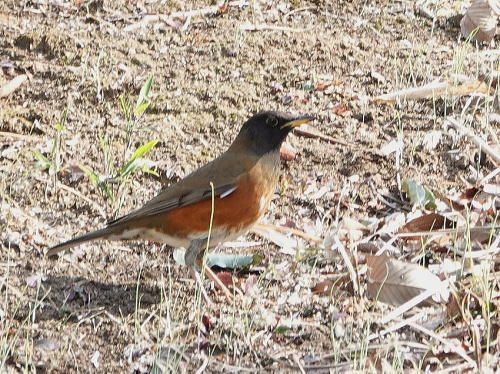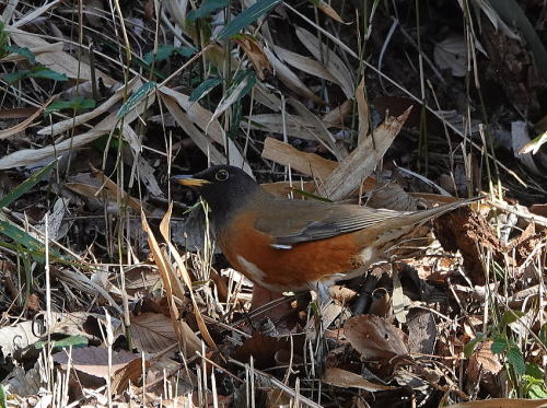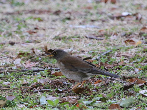 | ツグミ[3月4日] グラウンドのポールでポーズ。 | アカハラ[3月3日] 今日は落ち葉をカサカサと踏みながら餌を探していました。 | |