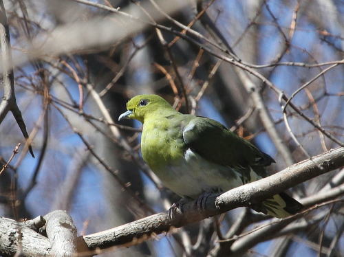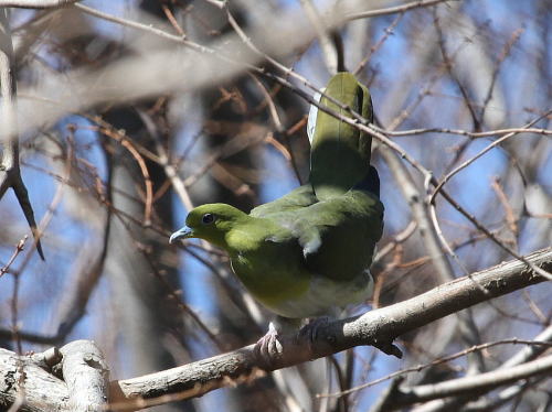 | アオバト[3月15日] 海寄りの公園にいると教えていただきました。 | アオバト[3月15日] 直ぐに駆け付けてからもまだ1時間くらい止まっていました。 | |