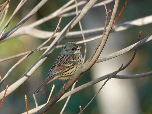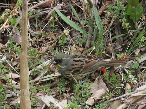 | 桜[3月23日] 近所の公園の桜は未だ三分咲きくらいです。 | アオジ[3月20日] このところ見かけるようになりました。 | |