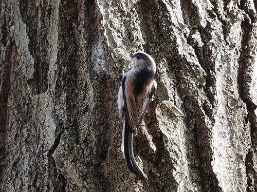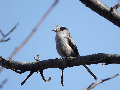 | クロモジ[3月14日] やっと咲き始めました。 | エナガ[3月14日] 巣材を集めに来たようです。 | |