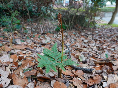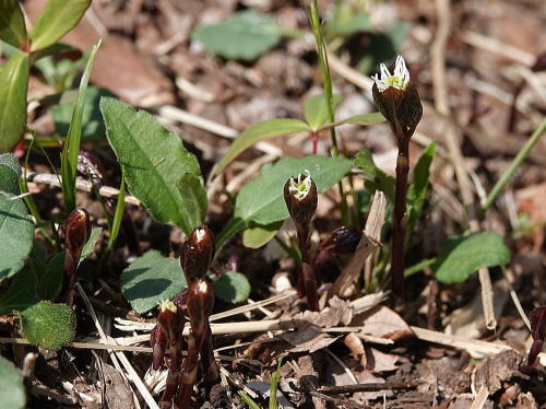 | フユノハナワラビ[3月7日] 目立ちませんが数本咲いていました。 | ヒメウズ[3月7日] この一輪だけ咲いていました。 | |
